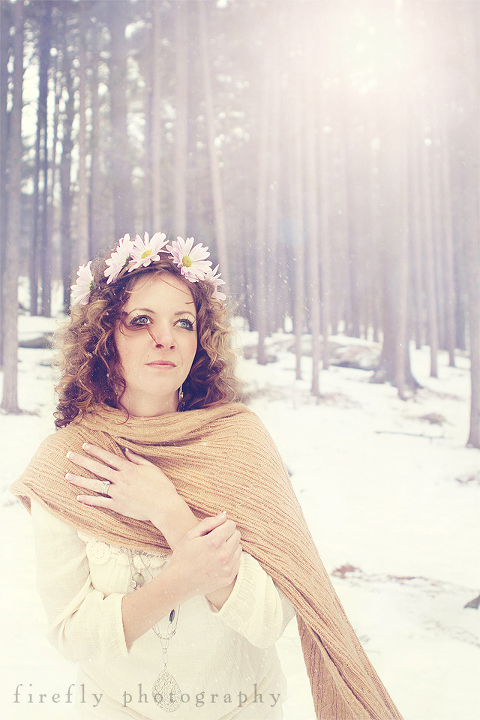 This latest installment was an idea I had to recreate a Winter Fairyland in Keene, NH. I had done the Art Walk in Keene last summer. I was paired with Salon Exodus in town. Over the fall, I approached Deb, the owner of the salon, with my idea for a soft, ethereal winter stylized shoot with a neutral color palette. She was very receptive. I sent her some visual inspiration as to what I had in mind and she was 100% on board. Three of her salon employees were in on the shoot with me and agreed to be models. It was lightly snowing on the day of the shoot and I was wearing warm winter clothing and they were in dresses……they were shivering between frames. But they were open to whatever I had in mind. It was really amazing.