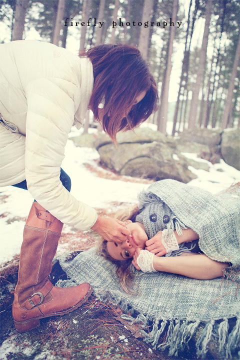 A few technical details for those who are interested: It was a little overcast, so I had a soft, flat light to work with. I shot all the images with the Canon 24-70 2.8 lens on the Mk2 body. I did not use any additional equipment, although the snow on the ground helped create a nice natural fill light at times. My ISO was consistently at 200 (although in retrospect, I think I could have shot at 400). F-stop was 2.8 with a single subject and up to 5.6 with all three. My shutter speed was all over the place, depending on aperture and the direction we were facing.