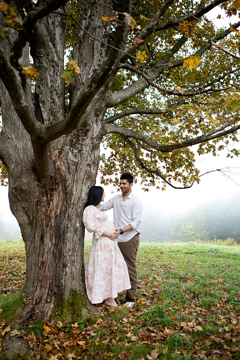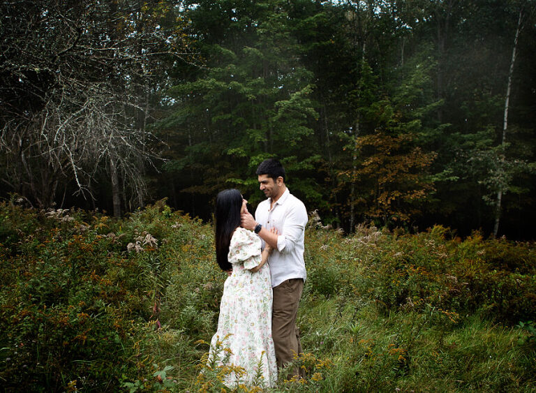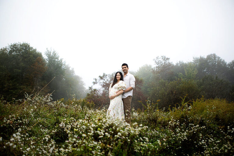 Explore how the vibrant summer sunlight and the lush greenery of Hanover create an ideal canvas for celebrating the beauty of pregnancy. This was a misty, dreamy photo session up at the top of Balch Hill, Hanover, NH right here in the Upper Valley