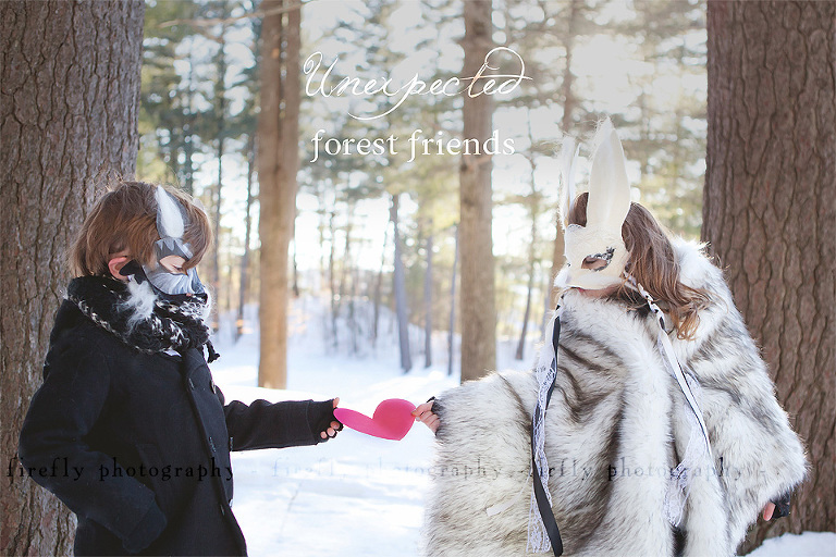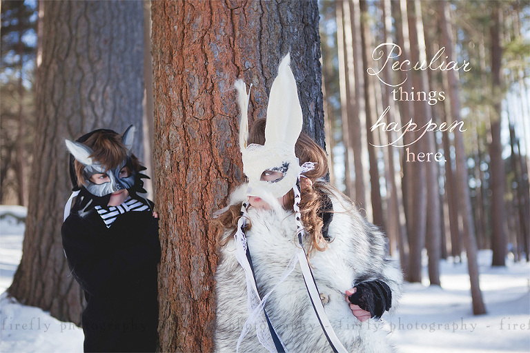 This concept shoot featured two children named Zain and Jolie.  I want to thank Kylah and Avril who lent me their kiddos. I am also grateful for the use of Keene’s city park, Robin Hood Park. New England Fabrics on Ralston Street provided the faux fur fabric, the laces, the bowtie fabric, the ribbons and the much of the other details of the costumes. The fonts I used were Jellyka’s font, “Western Princess” and redFONTS’ “Ab Nirvana”.