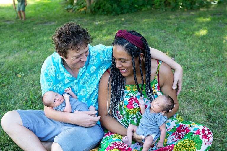 As an Upper Valley and Keene NH, photographer, I always love getting requests for newborn portraits. It’s so cool to get these images of new parents who are really on the brink of a whole new phase of their lives. I am so happy I switched over from newborn studio portrait sessions, to the in-home lifestyle sessions. I really loved the colorful style of this family photo session here in Lebanon NH in the Upper Valley. The twins were pretty relaxed and chill during our session and the weather was so nice, we decided to shoot outside in the natural light. As a family photographer here in the Upper Valley, I’ve not had the opportunity to photograph a lot of twins, but it’s such a joy to do so every now and again.