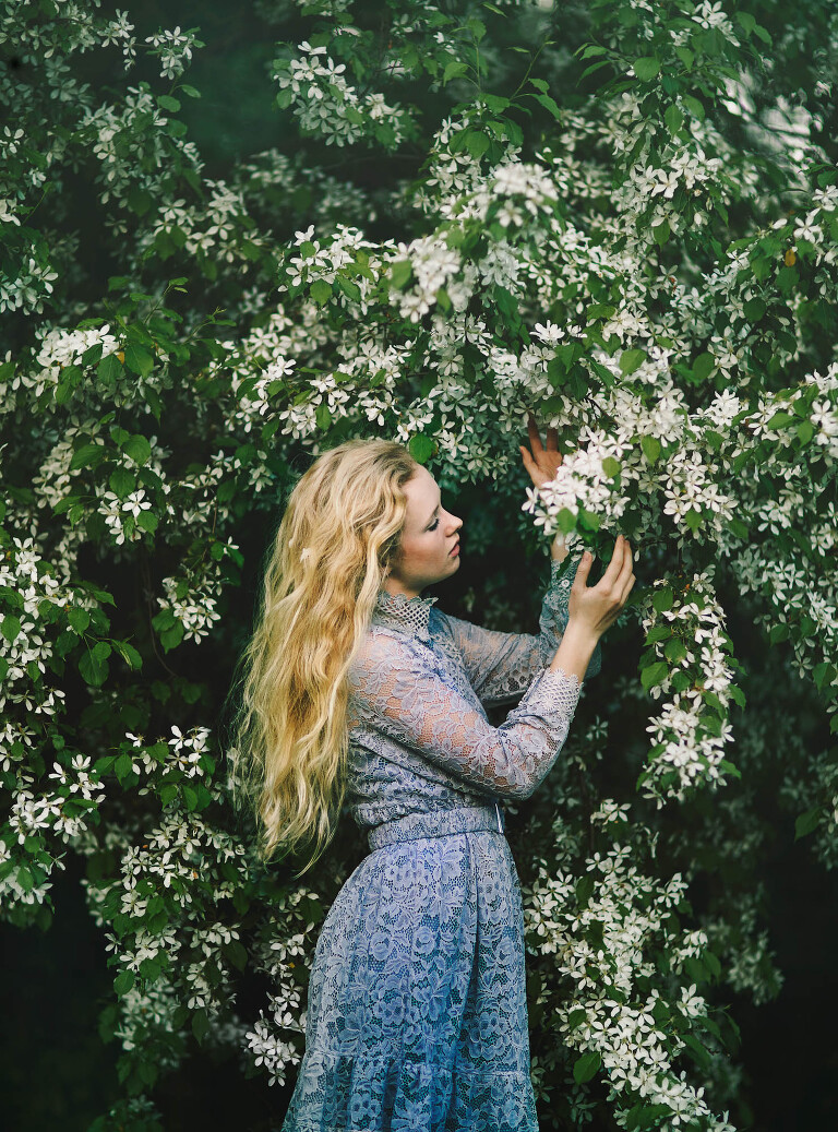 As an Upper Valley of NH and VT photographer, I am always looking for interesting places to do portrait photography. I love how the seasons change the landscapes so rapidly here in the Upper Valley and in New Hampshire. I noticed that there was a beautiful flowering tree in Hartland, VT that I absolutely needed to photograph with some portraits. I was feeling inspired, also, by some dresses that I had and got this “dollhouse” sensibility to my approach to this session. Enjoy these fine art portraits from that day.
