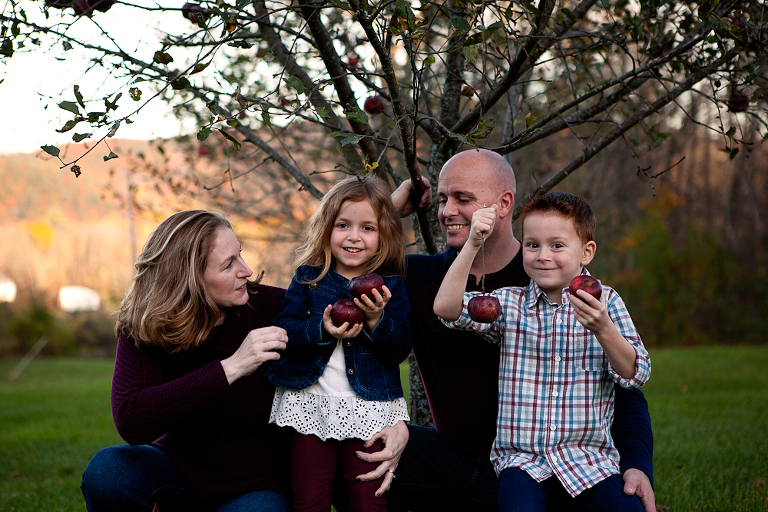 As a family portrait photographer here in the Upper Valley, I don’t even know where to begin with this session. I absolutely love this family. We trekked over to Alyson’s Orchard over in Walpole, NH (not far from Keene, NH) for our family photo session. These guys have their hands full with three energetic boys! It was great to get out to the orchard for our photo session so the kids could run amok a bit. I love watching this sweet family grow year after year. Enjoy these late summer portraits during our photography session here in beautiful New Hampshire.