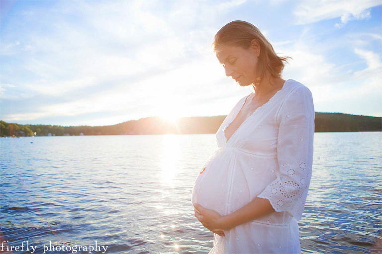 This maternity photography session here in Keene, NH was a pleasure. The sun setting over the lake created a beautiful flare on this gorgeous mother.