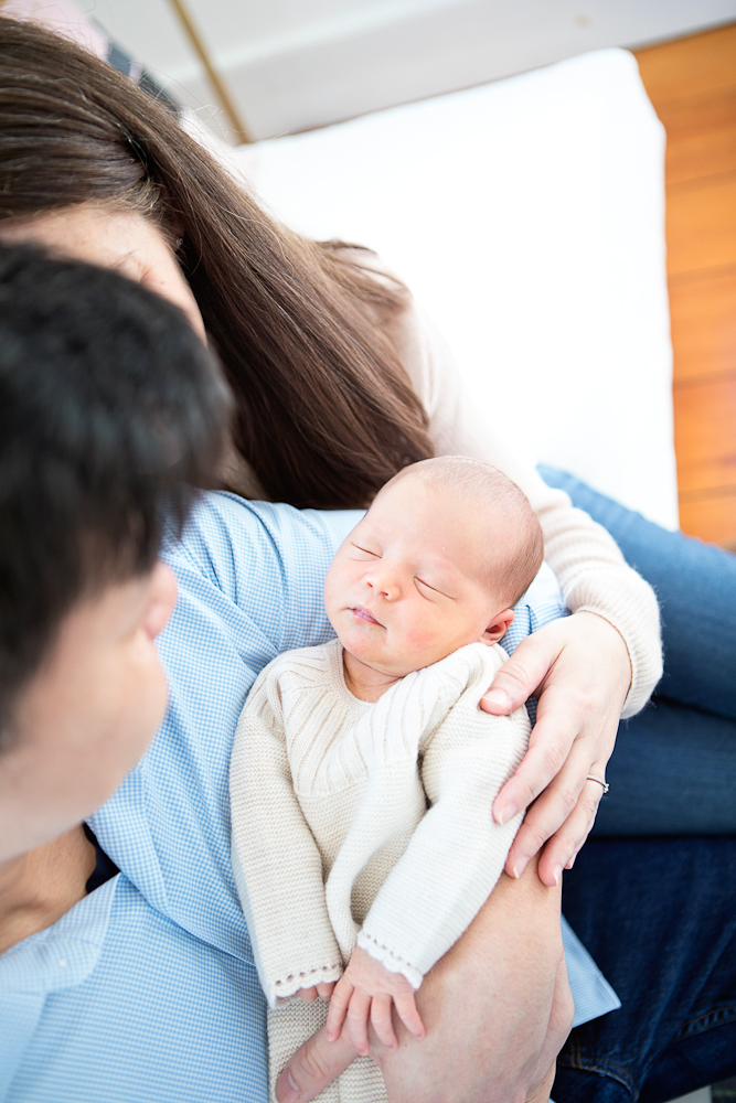 As a Keene and Upper Valley lifestyle newborn photographer, I adore newborn portrait sessions. I used to do super posed newborn portraiture in my studio, but when COVID hit and I could no longer use my studio, I started traveling to people’s homes (like I used to do way back in the beginning of my career) and photographing there. It’s been a wonderful transition back. New parents don’t have to travel. They can be in the comfort of their own own home and I will simply come to them. Plus, I’ve taken the pressure of “posing” the baby, off. If the baby sleeps, then we get some sleepy images and if not, not. Usually we get a sleepy image or two anyway. And this way, the images are more authentic! It’s a snapshot in time for my clients and their newly expanding families that they get to keep forever. I try to include all the family members (and that includes your pets) into the photographs so we can get a true story captured. Here’s a recent lifestyle newborn photography session here in the Upper Valley