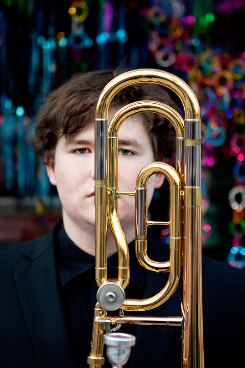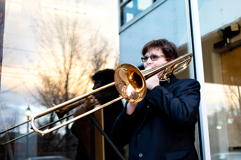 As a portrait photographer here in the Upper Valley of VT and NH, I had an absolute ball photographing this young man’s senior portraits. We decided on an urban feel and hung out in downtown White River Junction, VT. An avid musician, we included his trombone in the photos. We were blessed with mild temperatures for the senior session. Here are the results!